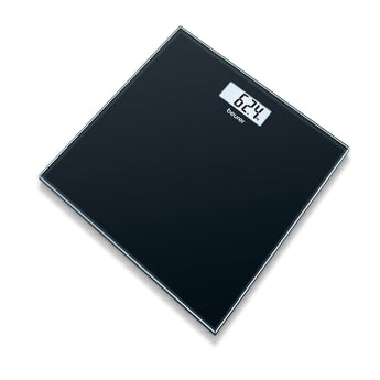 The Beurer GS 10 Black is a stylish glass bathroom scale with a slim 1.9 cm profile—ideal for compact spaces. It offers an easy to read LCD, quick start technology (just step on), automatic switch off, overload indicator and a tempered safety glass platform. Maximum weight capacity: 180 kg.