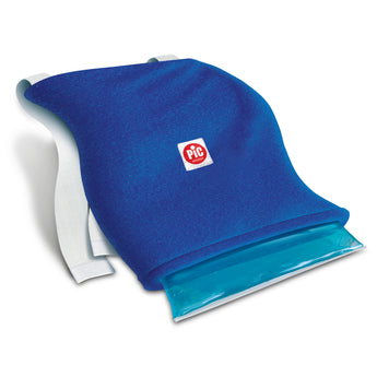 A large Thermogel pad (20x30 cm) featuring a comfortable cover with two elastic straps to secure it on larger body areas like the back, abdomen, thighs or shoulders. Reusable for hot or cold therapy as directed.