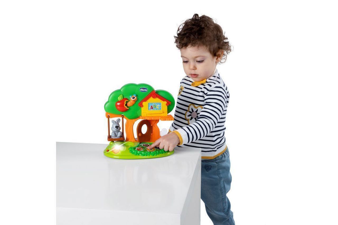 - By moving the bunny around the tree, the child can learn the first words in two languages, Italian and English.