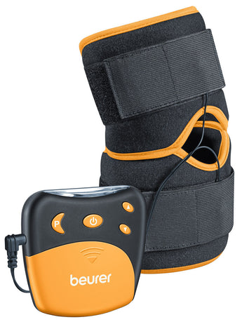 Target pain relief at the knee or elbow with the Beurer EM 29. The universal cuff uses wear free water contact electrodes—no gel pads required. Choose from 4 pre set TENS programs and adjust intensity to suit. Washable cuff with hook and loop fastener; safety switch off and timer.