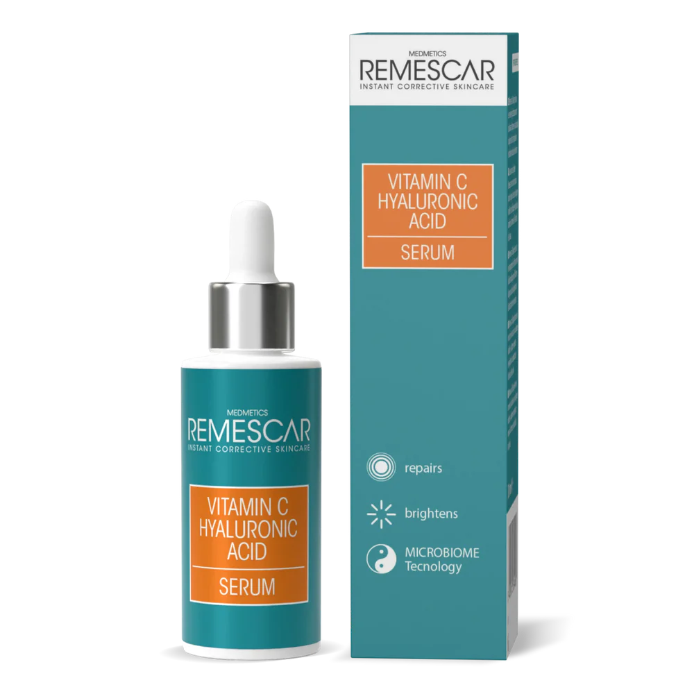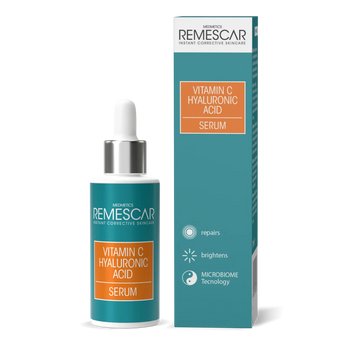 نظّفي بشرتكِ باستخدام ماء ميسيلار من ريميسكار، ثمّ رجّي سيروم فيتامين سي وضعي كمية قليلة منه ووزعيها على مناطق وجهك ورقبتك معاً.